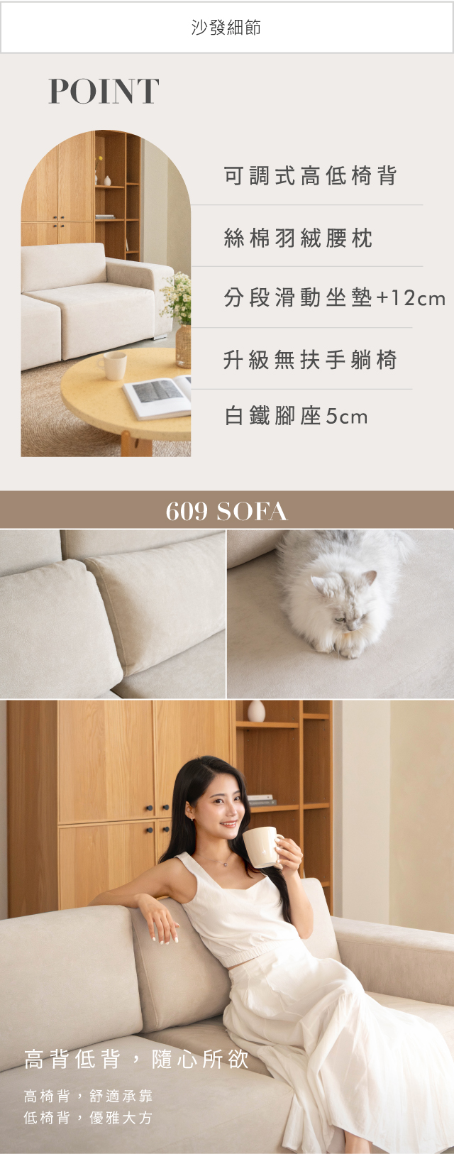 609 mini以色列王子貓抓布加大三人份單扶手躺椅沙發