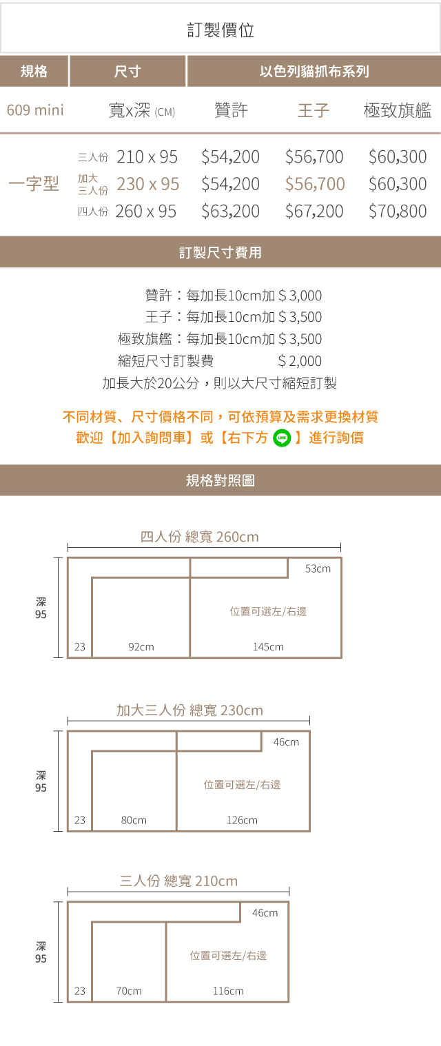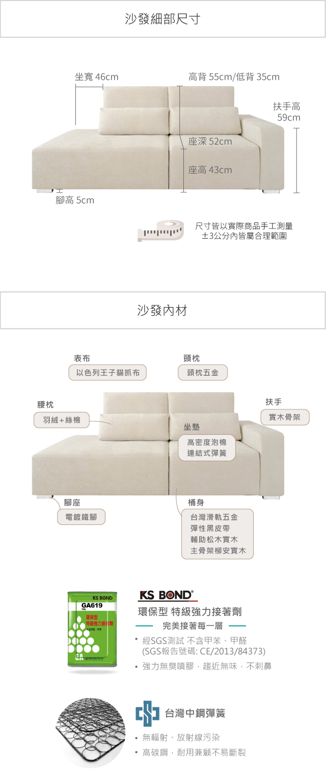 - 尺寸:加大三人份單扶手躺椅 寬230 深95cm