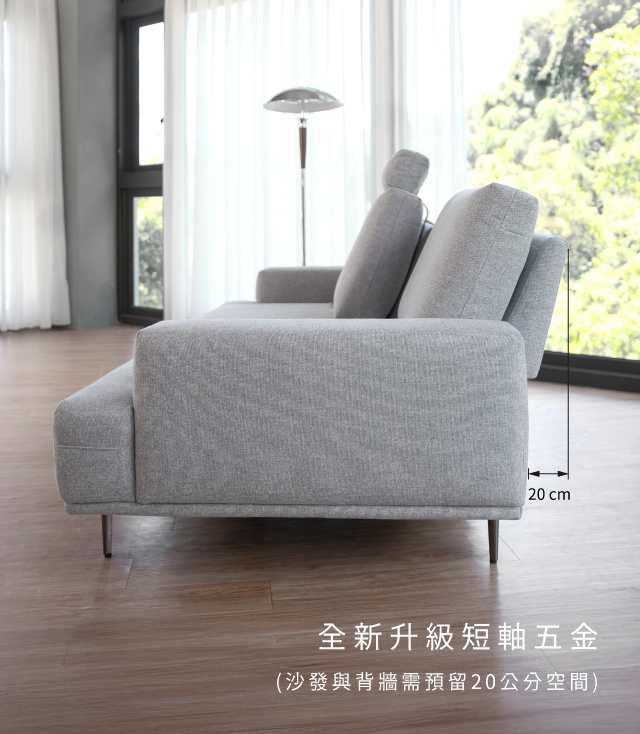 - 尺寸:三人份 寬200 深100cm,沙發與背牆需預留20公分空間