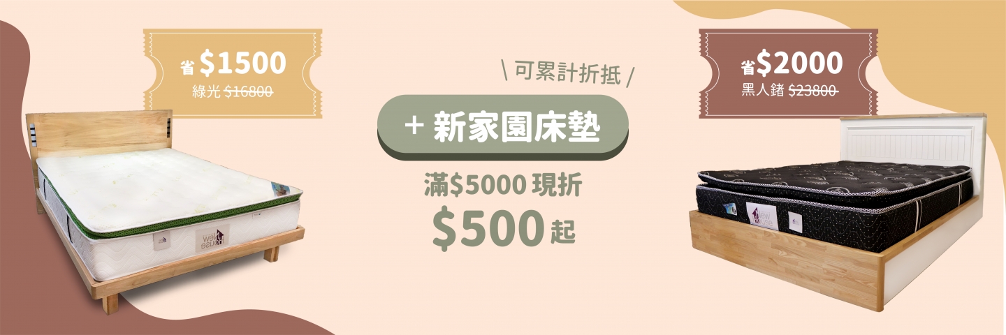 • 全館床墊 | 滿$5,000現折$500(累計折抵無上限)