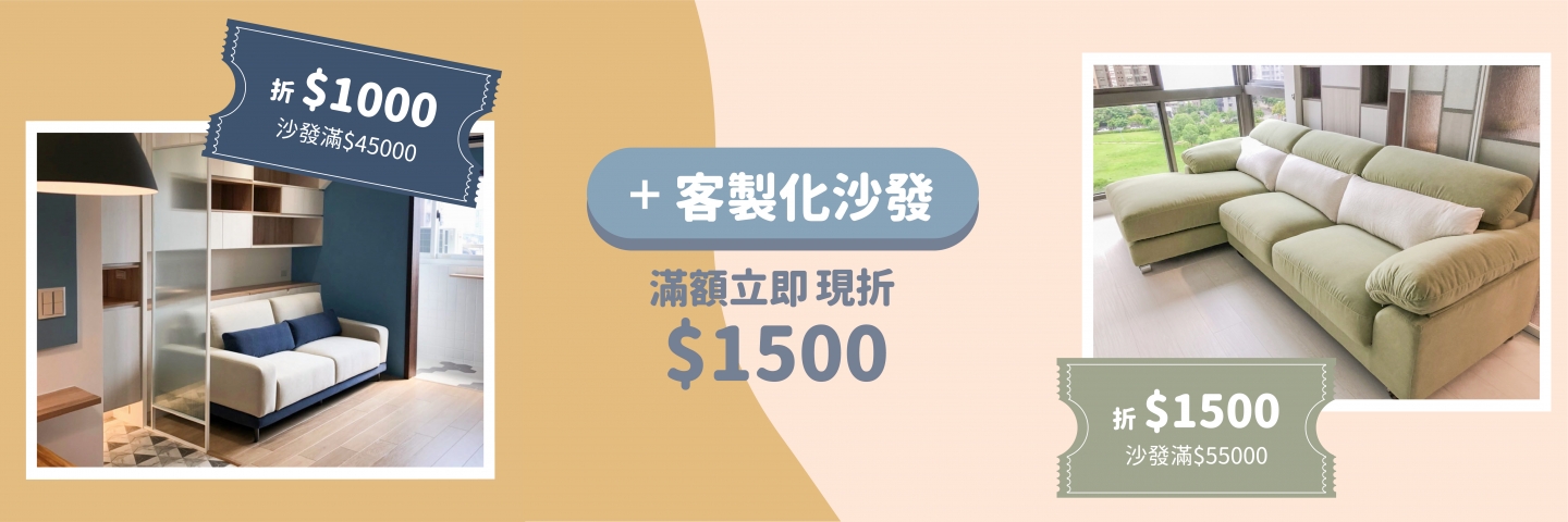• 全館沙發 | 滿$45,000現折$1,000、滿$55,000現折$1,500