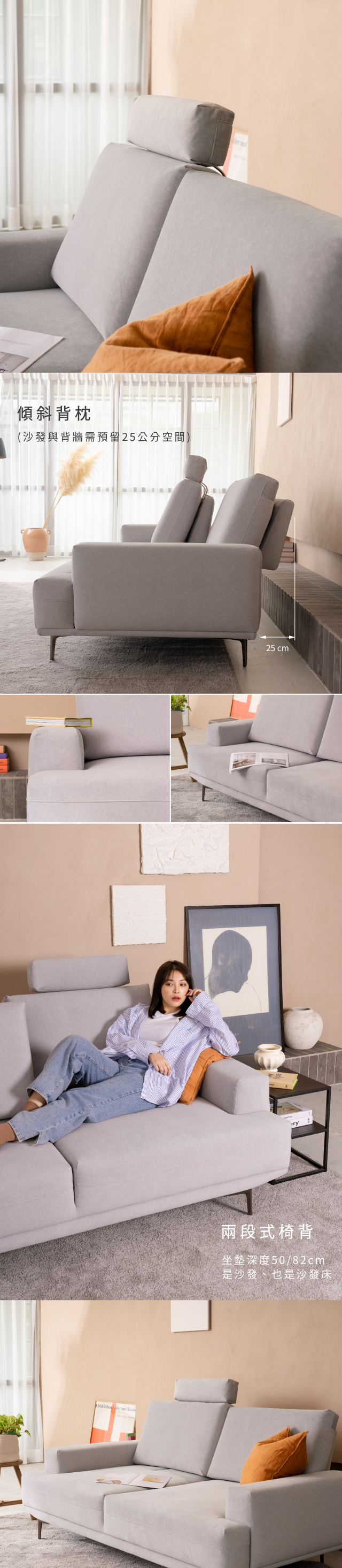 - 尺寸:三人份 寬200 深100cm,沙發與背牆需預留25公分空間